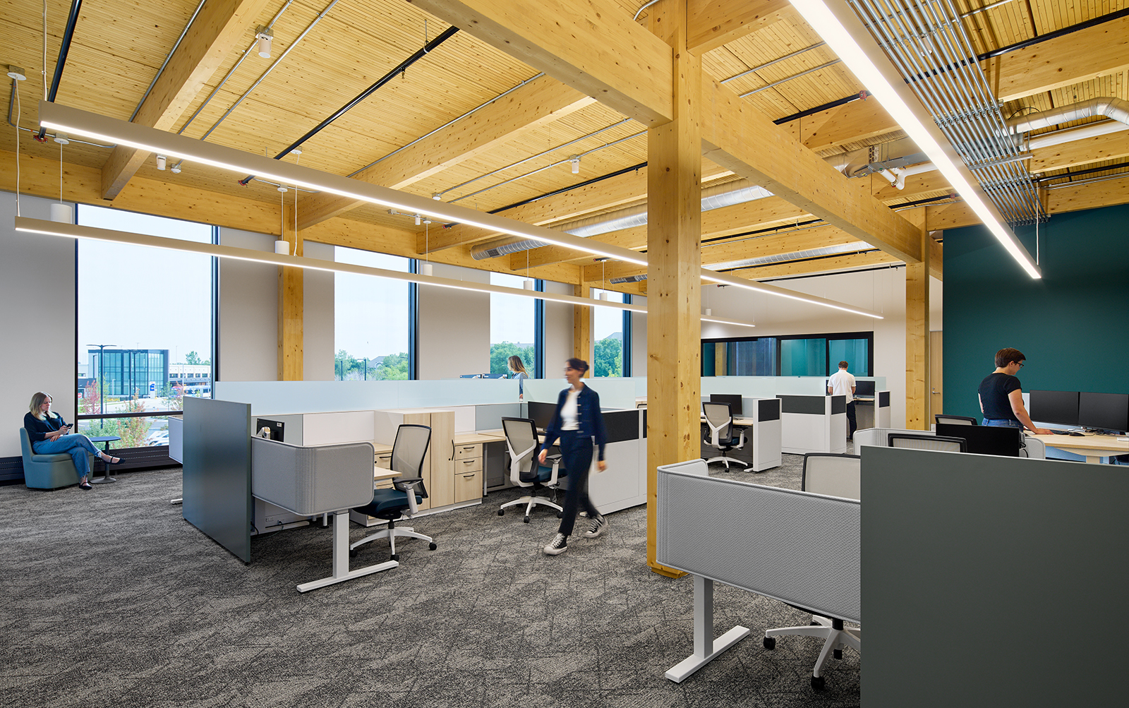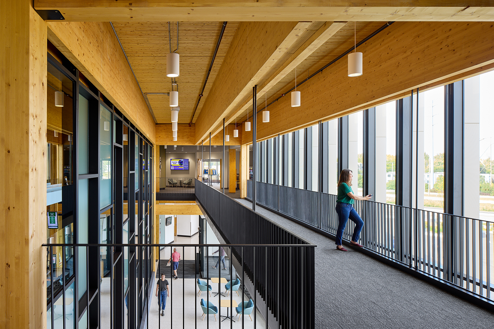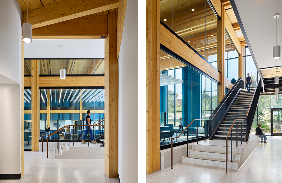 Washington County’s identity is deeply connected to nature, reflected in the project’s creation of high-quality natural spaces and a modern building that incorporates regional materials like wood, steel, and masonry. A key decision was to use mass timber construction, which aligns with the county’s nature-centric values by offering both aesthetic appeal and sustainability benefits.
